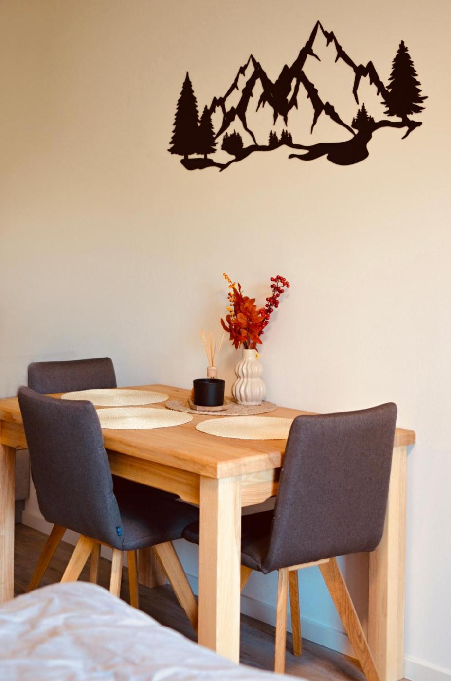 The apartment is equipped with 1 bedroom, 1 bathroom, bed linen, towels, a flat-screen TV with streaming services, a fully equipped kitchen, and a balcony with mountain views. The property has an outdoor dining area.